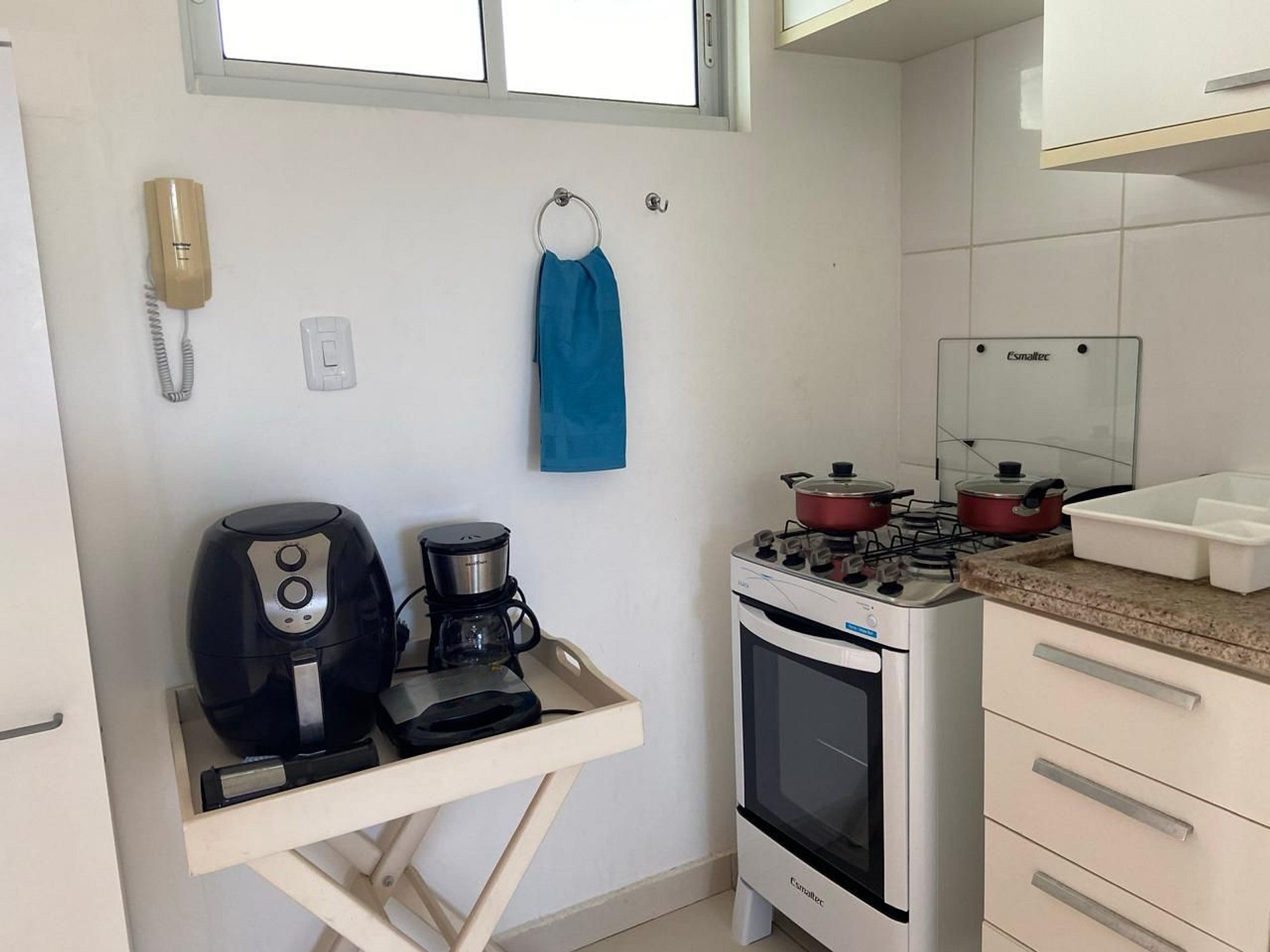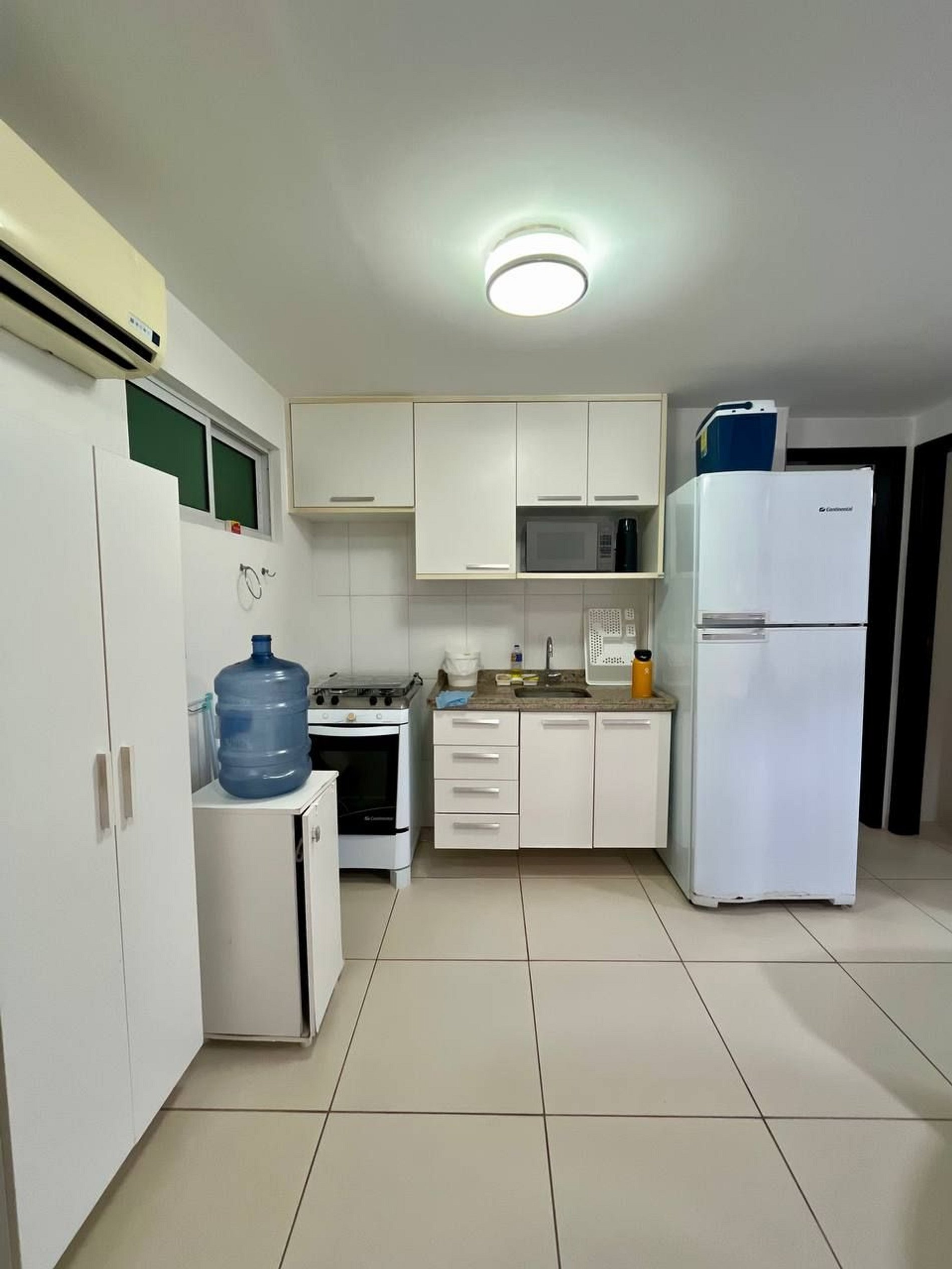 Esta unidade dispõe de ar-condicionado no quarto e na sala e tem cozinha completa com micro-ondas e geladeira.