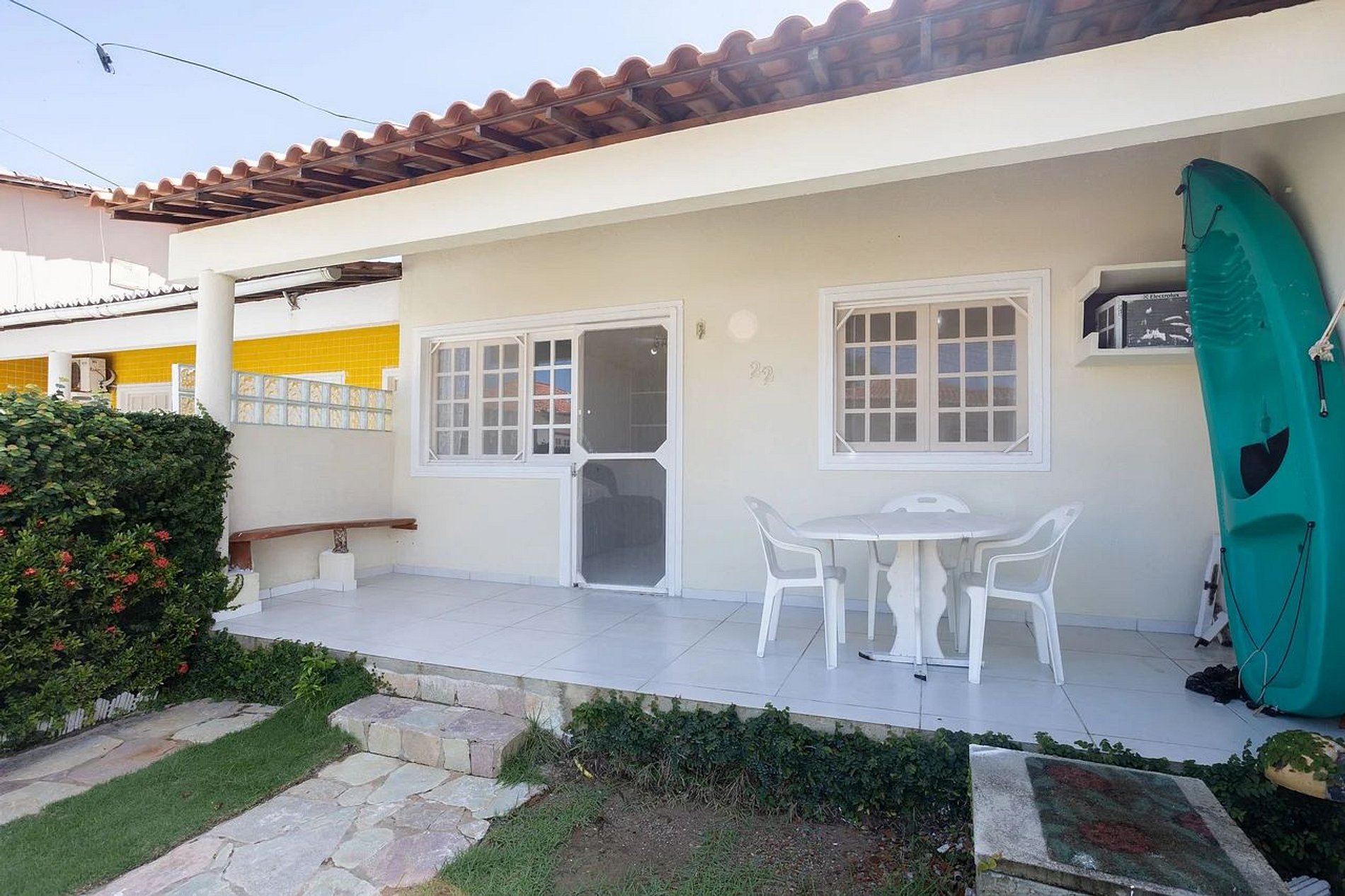 Nossa acomodação fora reformada visando melhor acolhimento a hóspedes, sendo ideal e versátil para grupos de amigos, casais, ou famílias. No pavimento térreo a casa possui varanda com Jardim, 2 quartos sendo 1 suíte, sala de estar, cozinha completa com àrea de serviço integrada. Já no pavimento superior temos uma suíte e varanda independente, onde é possível relaxar e desfrutar do som do mar na rede armada.