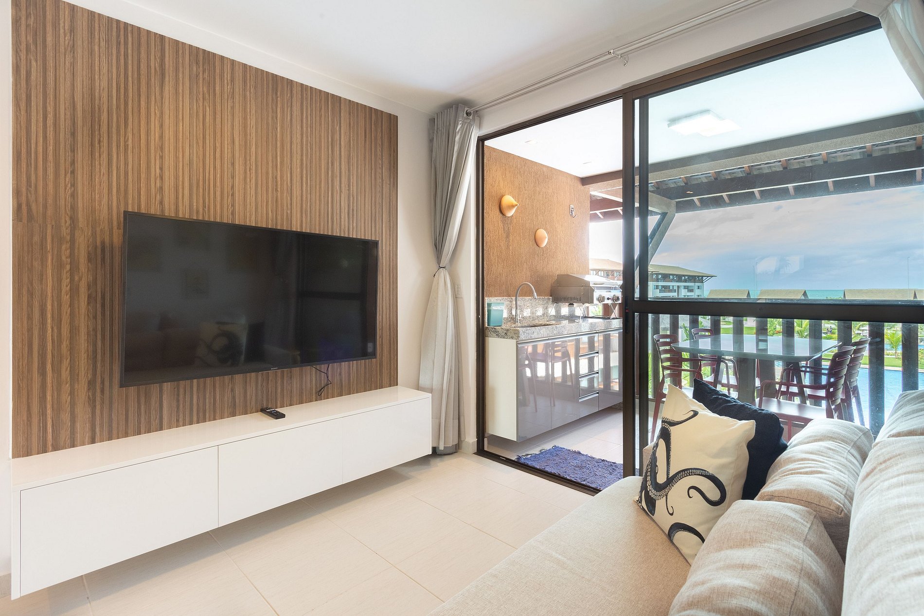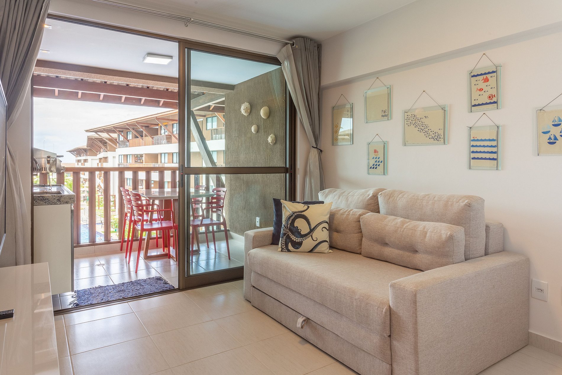 A unidade TURQUESA 214 possui uma excelente varanda com mesa churrasqueira a gás, onde é possível aproveitar bastante em família. O apartamento fora mobiliado e decorado pensando no conforto e bem estar dos hóspedes. Será um prazer recebê-los!